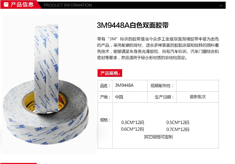 貨號:3M-9448A白色雙面膠帶