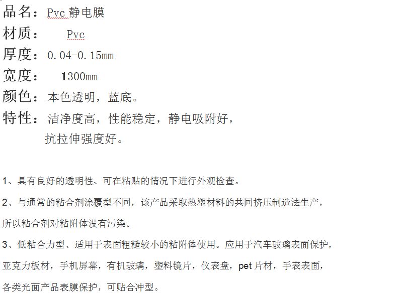 貨號:PVC靜電膜