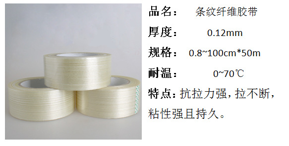 纖維膠帶是以PET為基材,內有增強的聚酯纖維線,涂覆特殊的壓敏膠制作而成。主要